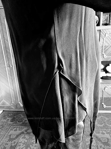 Насиченого чорного кольору блуза оверсайз (або на наш 56-60 розмір одягу) німецького бренду Marc Abbas. Смілива і практична туніка для сучасних, екстравагантних і неординарних жінок. Фактурна однотонна тканина дуже актуальна в теплі пори року: вона не тільки надає оригінальний вигляд виробу, але і прекрасно захищає від спеки та прямих сонячних променів, а також стійка до вигорань і деформації. Асиметричний вільний крій дозволяє активно рухатися, а хаотичні підрізи і хвости різної довжини створюють насичений і багатогранний образ. Рукав втачний, довжиною 3/4 приблизно. Прямий фасон. Округлий виріз горловини з коміром. Асиметричний низ. Натуральна віскоза легка, приємна на дотик, типу шифон. Блузка подвійна. Міцний матеріал добре пропускає повітря. Злегка тягнеться. Підходить для будь-якої пори року.