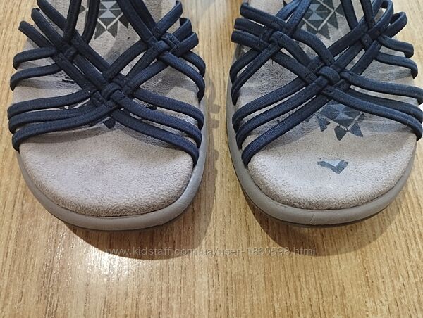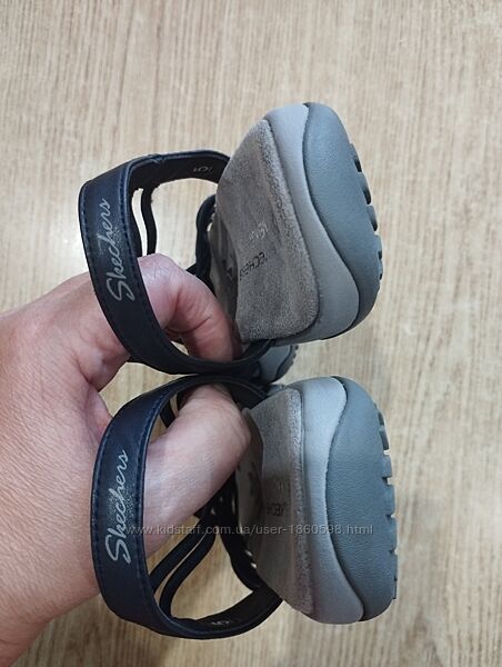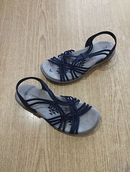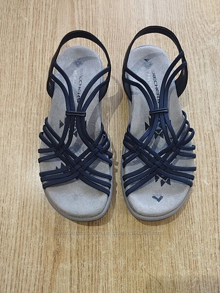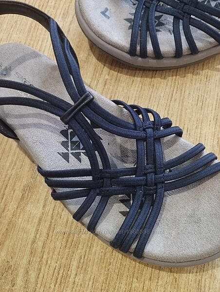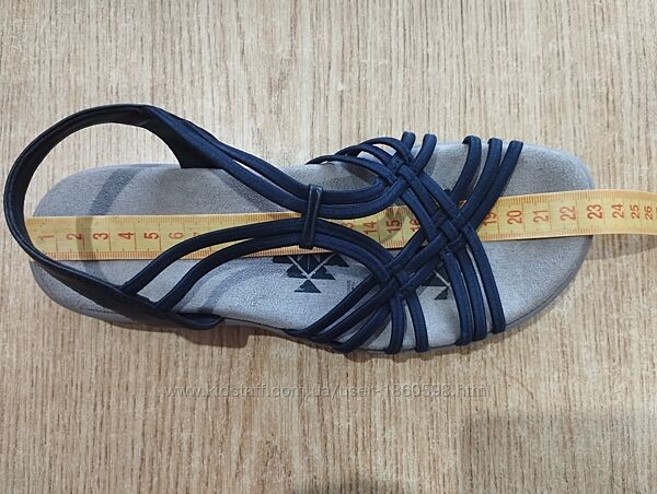 Босоножки Skechers Memory Foam т-синие, сверху плотные эластичные (тянутся), мягкая стелька, гибкая резиновая подошва, комфортные и легенькие на ножках.Длина стельки 22,5 см, ширина 8,3 см.