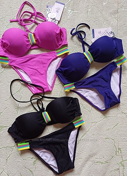 Шикарний купальник бикіні, 3 кольори Відмінної якості матеріалу і пошиття . Бюстгальтер на каркасе, с твердою з пуш-ап чашкою . застібка позаду, бретельки зав´язуються на шії, бретельки з´ємні.. Низ бікіні, посадка низка. Купальник повністю на підкладці. Купальники трохи маломірять.Размеры :
