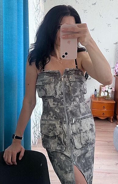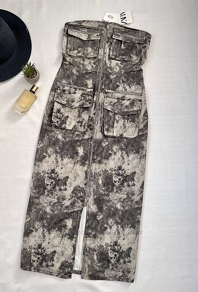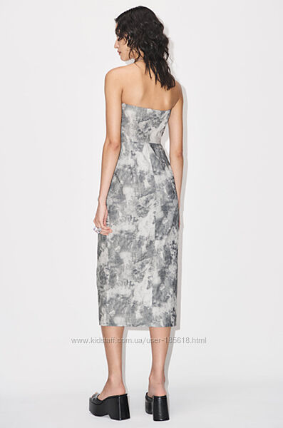 Стильна сукня міді без бретелей від Zara.Виготовлена зі 100% бавовни.