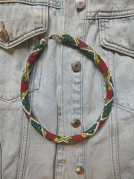 Джгут 52 см в довжину, з застібкою до 55см, 12мм в ширину. Зроблено з чеського бісеру, 7 кольорів бісеру. Якісна металева фурнітура. Власна ручна робота. Доставка за рахунок покупцяПредложения Premium магазинов