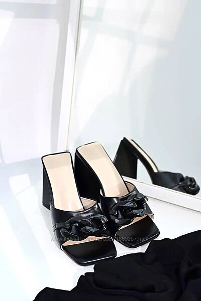 Подробное описание: Шлепанцы сабо женские черные на каблуке б1605