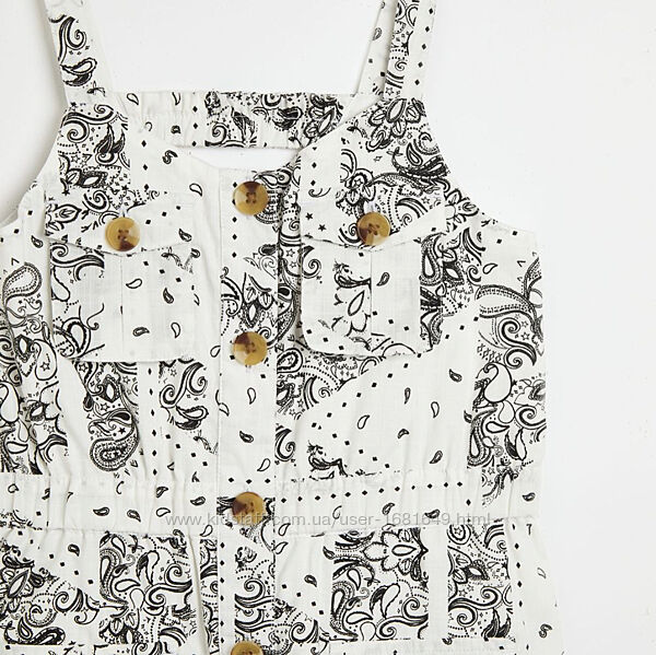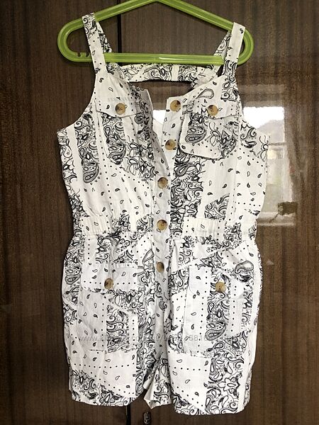 Комбінезон з шортами для дівчинки 10 років River Island. Біло-молочний з чорним принтом пейслі. Стан нового. На підкладі, не просвічує. Ідеальний для літа.Заміри: