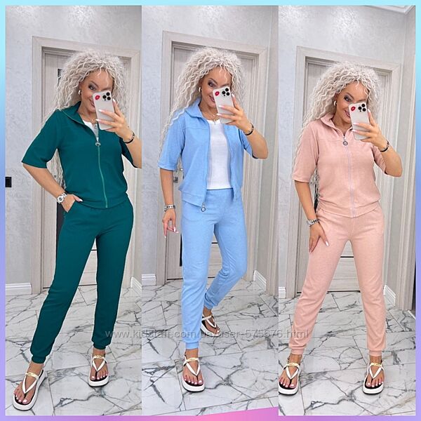 Подробное описание: Новинка р.42 до 60р. Костюм трикотажний кофта на змійці, штани з кишенями