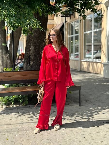 Подробное описание: 183/24 Новинка в тканині шовк Армані. Костюм в піжамному стилі. Рубашка на