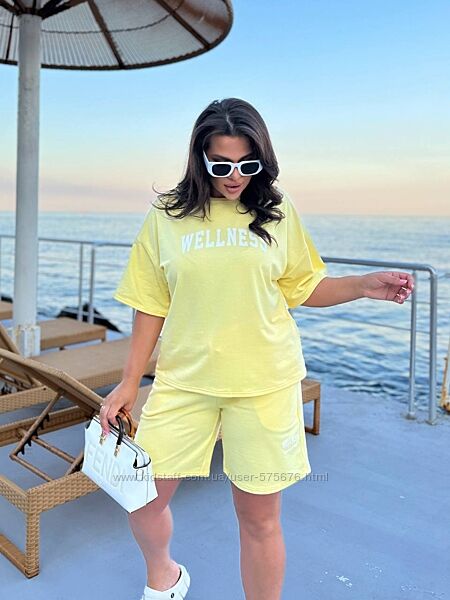 Подробное описание: р.42 до 60р. Костюм двійка футболка вільного крою, шорти з карманами
