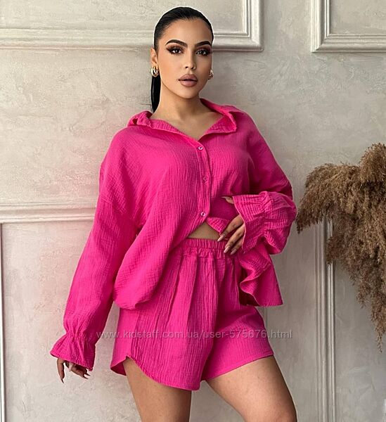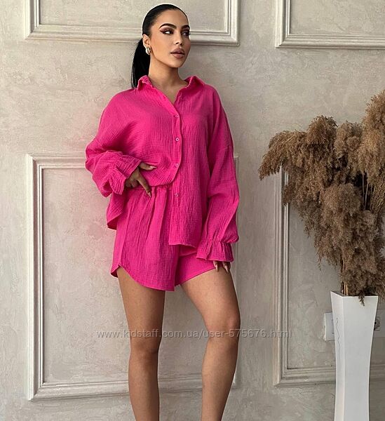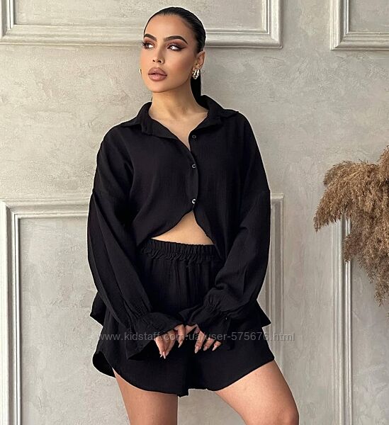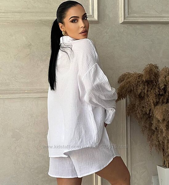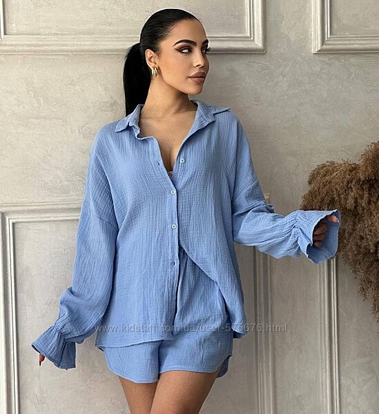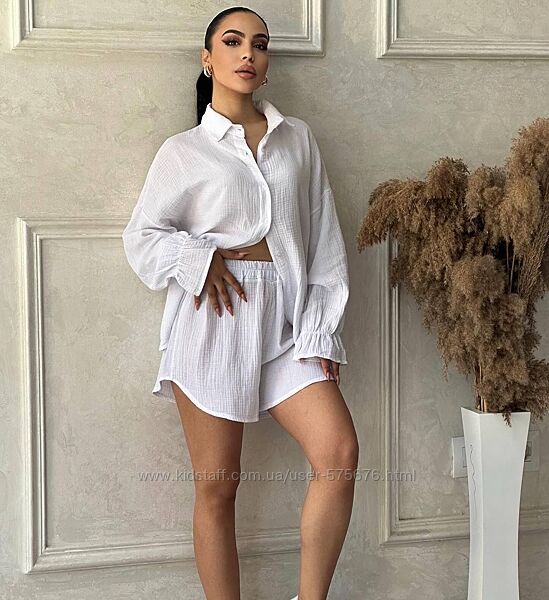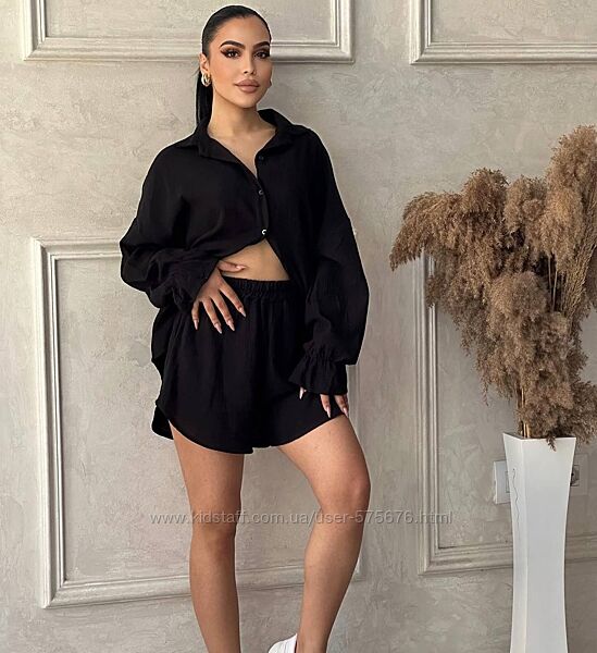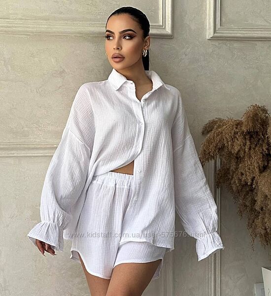 Подробное описание: S-M, L-XL костюм муслін сорочка та шорти