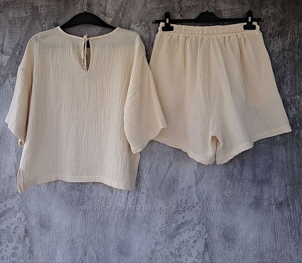 Подробное описание: Жіночий легкий літній костюм муслін, футболка, шорти, летний костюм