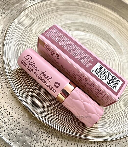 Формула, яка збагачена технологією Plumpgasm Heat + Ice Technology, Collageneer з ефектом пухкості та зволожуючою гіалуроновою кислотою, поєднує в собі зволожувальний комфорт бальзаму + ефект підсилення об`єму губ із гарним рожевим ефектом Pillow Talk, завдяки чому ваші губи виглядають пухкішими та гладкішими