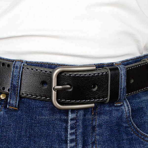 Подробное описание: Ремінь чоловічий шкіряний чорний JK під джинси