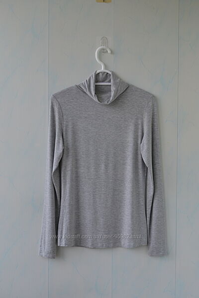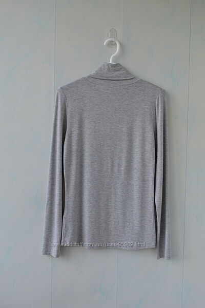 Якщо ви шукаєте чудової якості базовий гольф — ось він. Дуже приємний, м´який, середньої товщини з віскозного трикотажу, у благородному сіромукольорі. Це річ не на один сезон, носяться вони чудово. На бирці 12