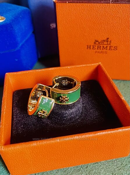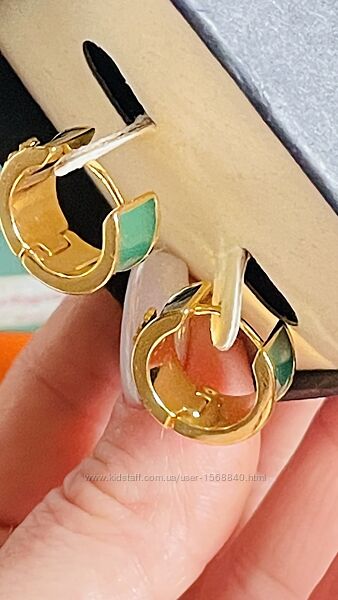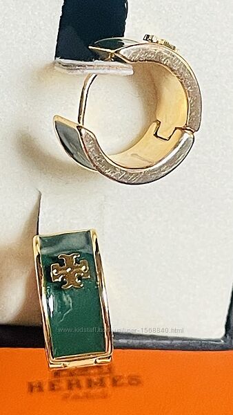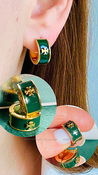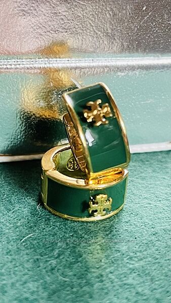 Стильні та елегантні сережки в стилі TORY BURCHЗолотавий метал та зелена емаль.