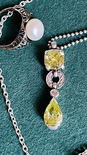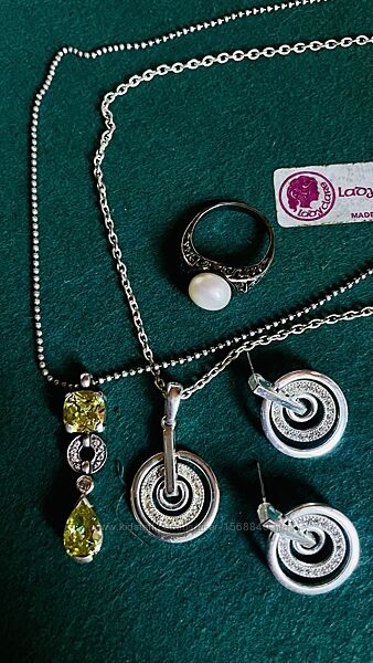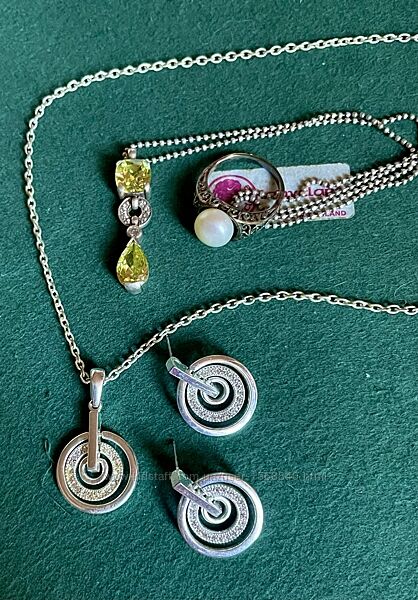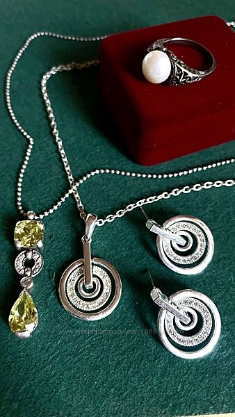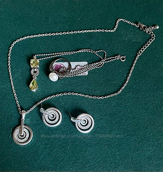В наявності елегантний сет-набір з двох підвісок з кулонами із стразами Swarovski та самоцвітами - цитринами, хризолітами, парою сережок з каміннячком Swarovski.Самоцвіти в сріблі, казково гарні та насичені, цитрини та хризоліти в діамантовій обробці.
