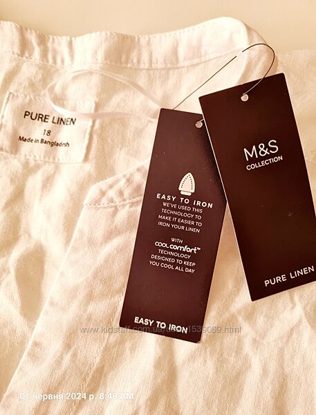 Білосніжна блуза, сорочка, UK 18, EUR 46 , M&S, Велика Британія з чистого легкого 100% льону для повсякденного носіння!Льон забезпечує вентиляцію шкіри, сприяє її інтенсивному кровообігу, а також зменшенню втомлюваності організму людини. Лляна тканина добре відбиває сонячні промені і затримує ультрафіолет.