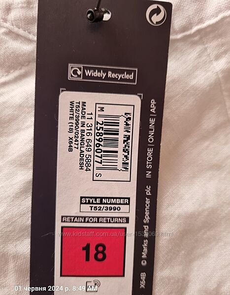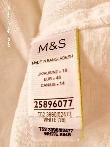 Подробное описание: Блуза, сорочка, UK 18, EUR 46, 100 льон, M&S, Велика Британія