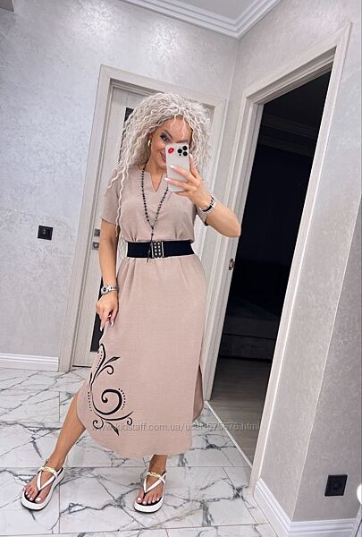 Подробное описание: 42-44, 46-48, 50-52, 54-56, 58-60 сукня жатий льон