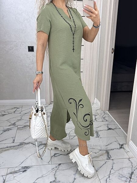 Неймовірно легка, комфортна, дихаюча сукня з V-подібним вирізом горловини.Якісна термо накатка.
