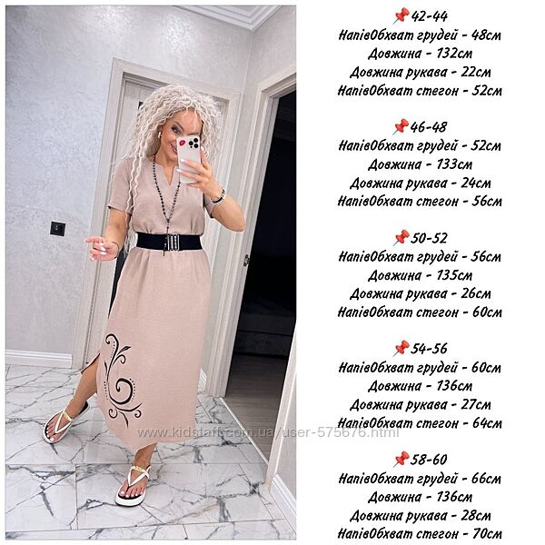42-44, 46-48, 50-52, 54-56, 58-60 сукня жатий льон