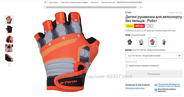 Подробное описание: Велоперчатки на 6 лет Btwin