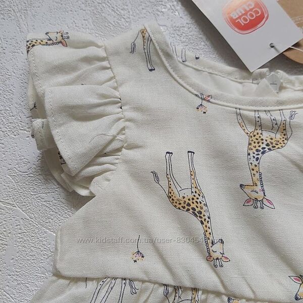 Сукня для дівчинки Cool Club. Розмір 62 см. Склад тканини: верх 55% льон, 45% бавовна, підкладка 100% бавовна. Полуоб´єм по грудях 24 см Довжина потцентру спинки 35 см Сукня на підкладці, на спінуі блискавка
