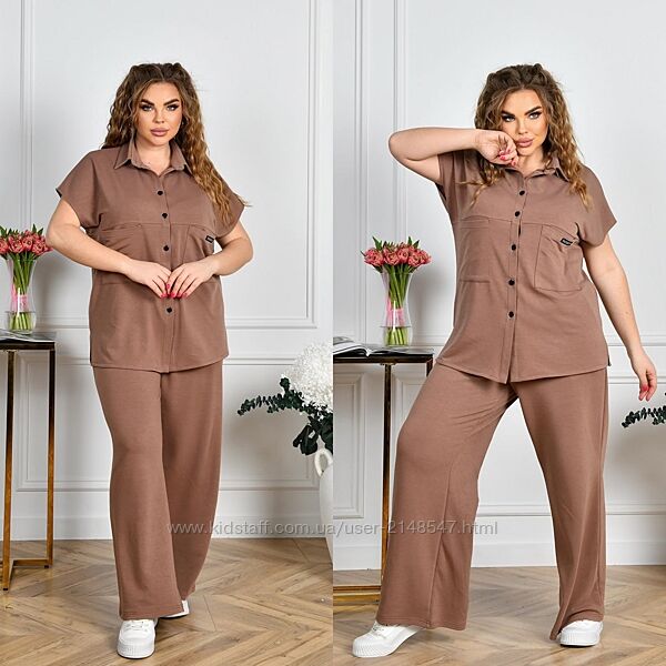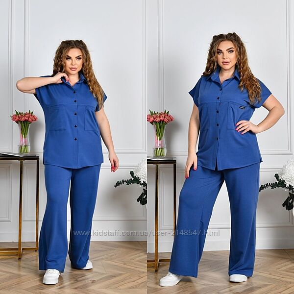 Стильний повсякденний костюм із трикотажу двонитки (розтяжність середня).Сорочка прямого силуету зі стояче-відкладним комірцем.