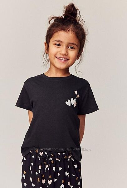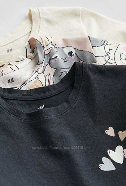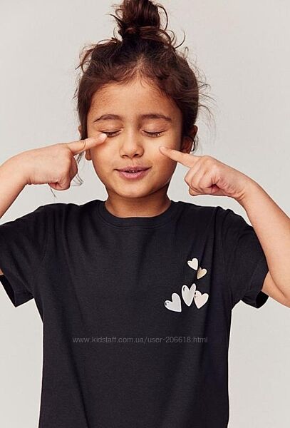 В наявності красиві футболочки Н&М для дівчаток 🩷 милі якісні принти, дуже приємні до тіла, бавовна 🤗розмір98-104 см 2-4 рочки - є графітова з сердечками