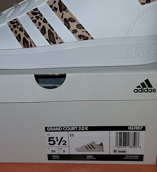 Трендові базові білі кеди з тваринним принтом лео Adidas Grand Court 2.0 Shoes, оригінал СШАМодель: IG1187