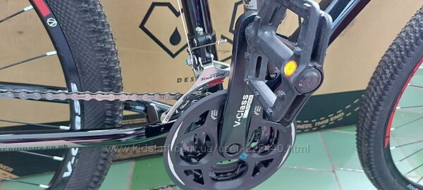 Амортизаційна вилка V-Class Sigma MLO з механічним блокуванням з легкого сплаву має хід 100 мм та добре справляється з нерівними ділянками дороги. Задній амортизатор Frank Kezhen KZ-880B, виконаний зі сталі та має 35 мм ходу.