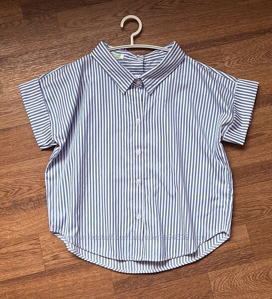 Стильная рубашка/блуза в полоску из ТаиландаНовая, не надевалась. Бирки с размером и составом нет. Вискоза или полиэстер.