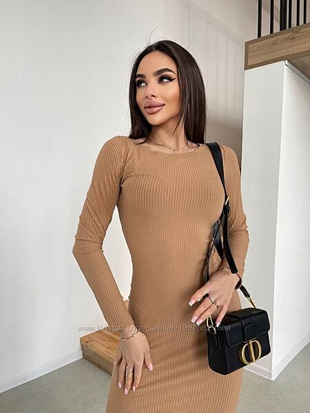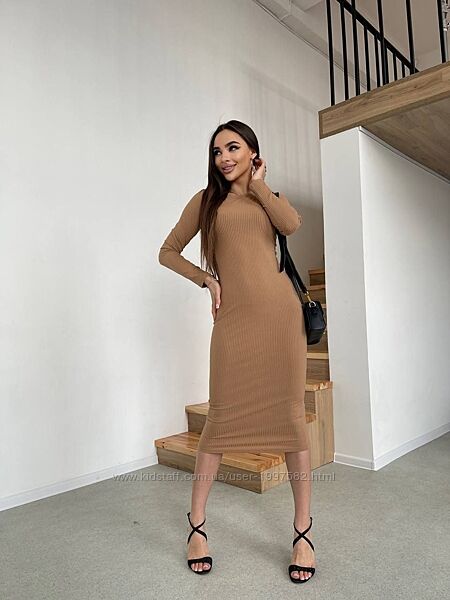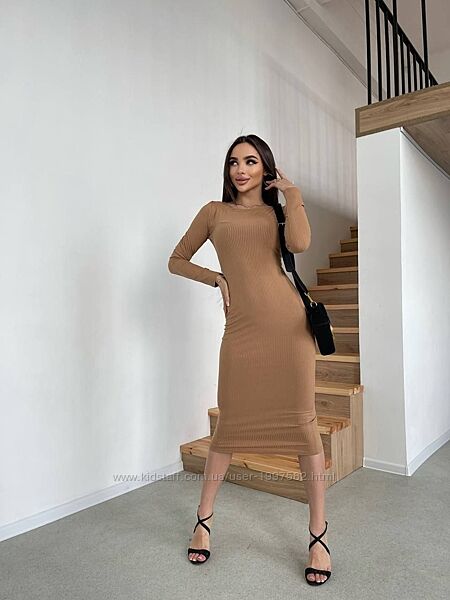 Подробное описание: Жіноча базова сукня трикотажна міді облягаюча з довгим рукавом в рубчик