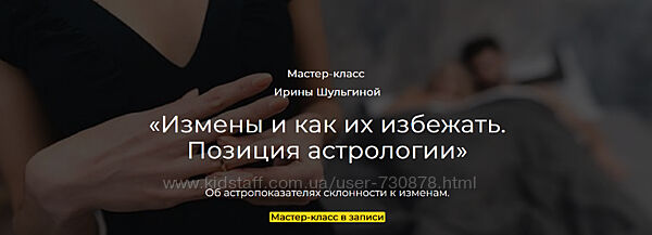 Ирина Шульгина Измены и как их избежать. Позиция астрологии (2024)Кто не мечтает об идеальной личной жизни? И мало кто хочет делиться своим счастьем в отношениях. Но есть личности, которым запреты нипочём, а моногамия – сомнительное удовольствие. Кто же эти «страшные» люди, каковы их мотивы, реально ли их вычислить астрологическими методами, можно ли избежать измен? Об этом вы узнаете на вебинаре «Астропоказатели склонности к изменам».
