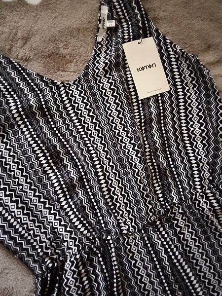 Новый легкий комбинезон абстрактной расцветки в полоску в черно-белых тонах.Бренд Koton, Турция, размер 38 европейский, подойдет на наш размер 44-46-48 и средний и выше рост.