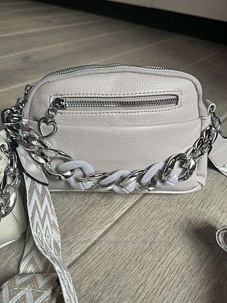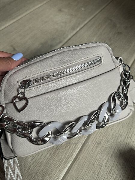 Дуже стильна, гарненька, не велика сумочка на 2 відділення.Якісна, міцна фурнітура, щільна підкладка.