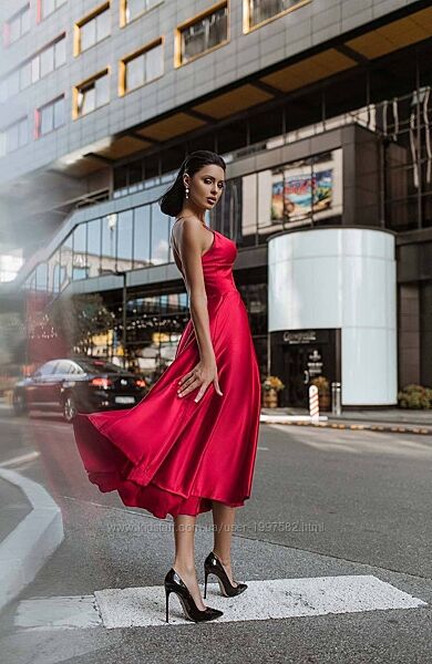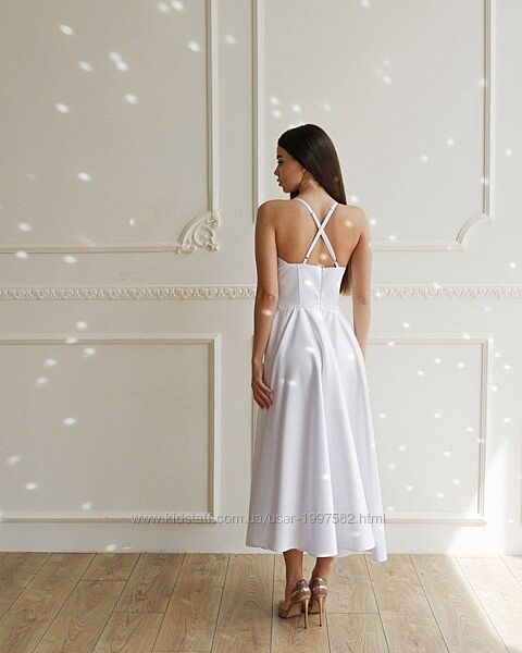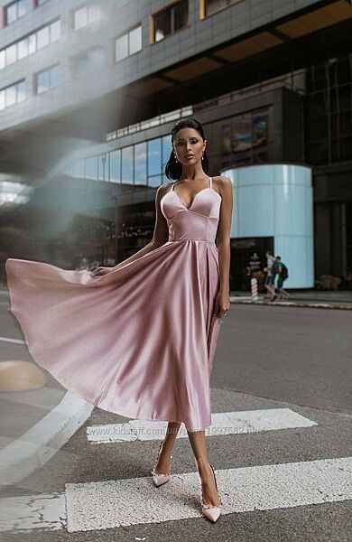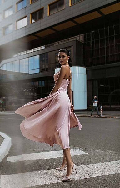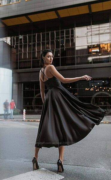 Подробное описание: Вечірня атласна сукня з корсетом з пишною спідницею міді на бретелях