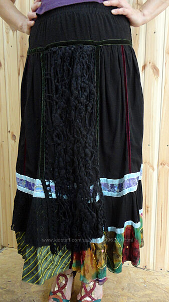 Оригинальная черная юбка в пол итальянского дизайнера Germano Zama на осеннюю погоду. Юбка украшена всевозможными прошвами, оборками.Цвет - черный