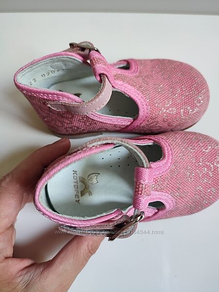 якісні ошатні туфельки/сандаліі від "Kotofey"/ 21р - внутрішня устілка 13см (краще на стопу 12-12,5см) - взуття взуте два рази. Стан майже нових.колір: рожевий + сріблястий візерунок у вигляді квітів