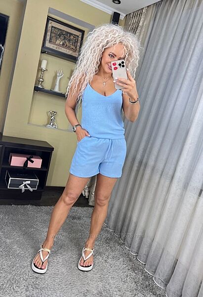Подробное описание: 42-44, 46-48 костюм майка та шорти креп жатка Амерікано