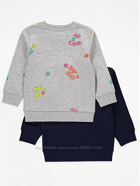 Свитшоты George на 4 - 5 лет, рост 104 - 110см.Состав: синий - 80%хлопок 20%полиэстер, серый - 76%хлопок 21%полиэстер 3%вискоза.