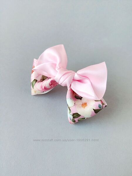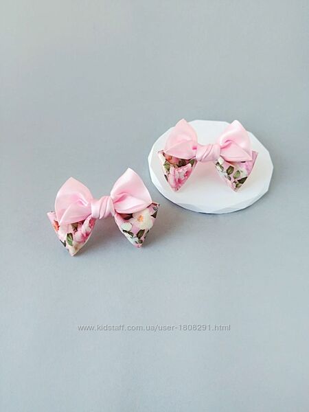 Подробное описание: Ніжно-рожеві бантики з квітковим принтом.
