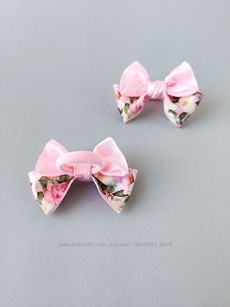 Ніжно-рожеві бантики з чудовим квітковим принтом - ідеальна прикраса для зачіски вашої принцеси! Ці бантики створені спеціально для того, щоб підкреслити красу та індивідуальність маленької модниці.Розмір бантика – 9 см, що робить його досить помітним, але при цьому не надто громіздким. Сатинова стрічка, з якої вони зроблені, відрізняється чудовою якістю і приємною на дотик фактурою.