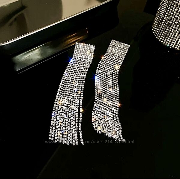 Эффектные длинные серьги подвески со стразами тренд сезона. Длинные висячие серьги добавят образу роскошный утонченный стиль и неординарность .Длинные трендовые серьги с камнями. Очень эффектно выглядят!
