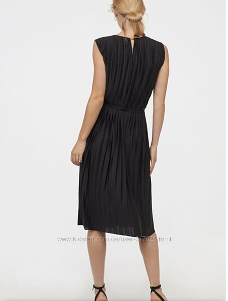 Сукня міді H&M. Матеріал плісирований. Є пояс. Колір -чорний . Розмір M (наш 46-48) . Стан ідеальний, без дефектів . Нюанс: на поясі загублена металева частинки на кінці. НО талії 38 (всередині вшита резинка, тягнеться), довжина 112. Верх вільний.