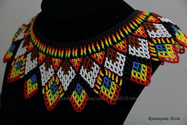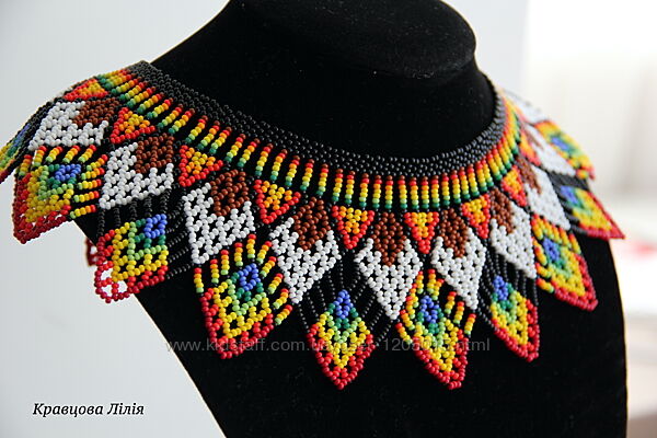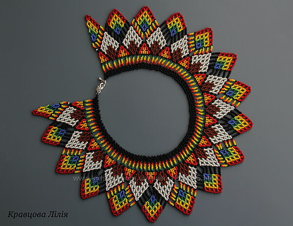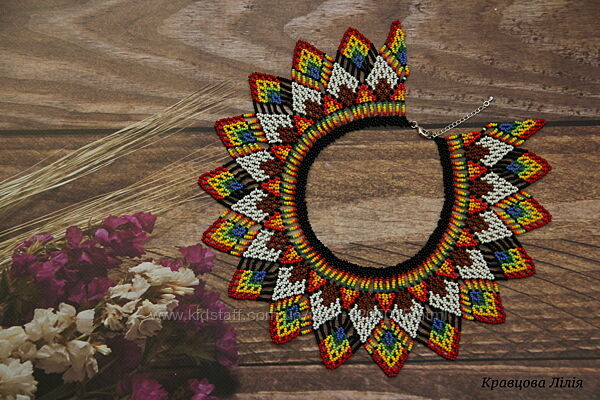 Неймовірно красиве, яскраве кольє (комірець) з бісеру в стилі уічольских мотивівРозмір: