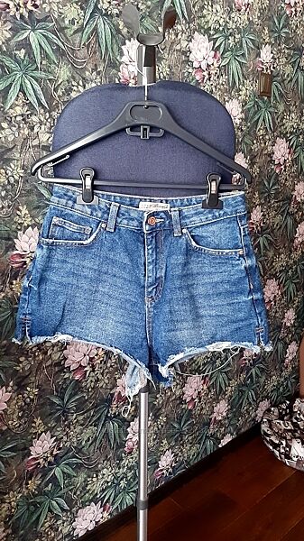 Синие джинсовые шорты высокая посадка