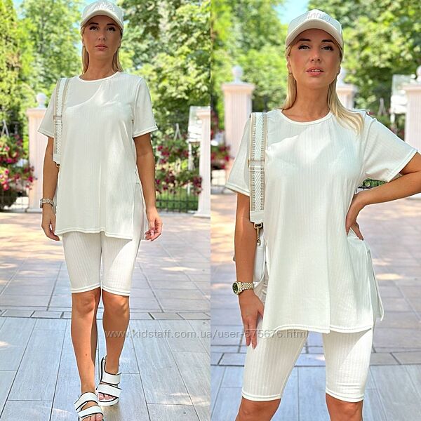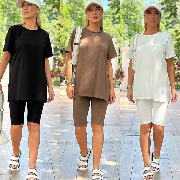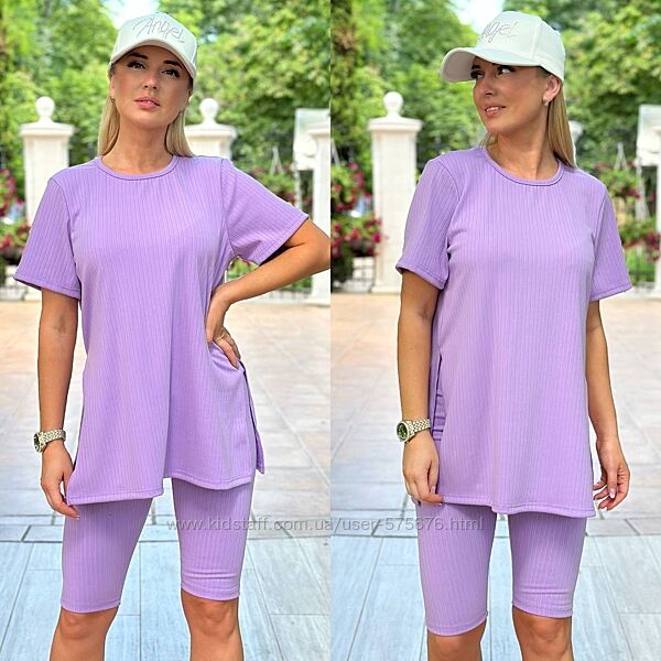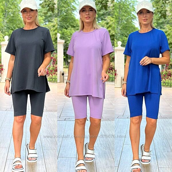 Подробное описание: 42-44, 46-48, 50-52 Костюм футболка та велосипедки широкий рубчик