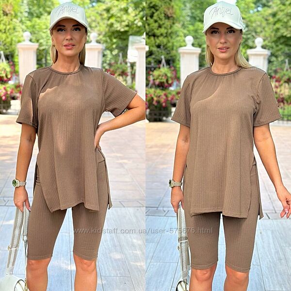 Костюм футболка та велосипедки широкий рубчикРозміри: 42-44, 46-48, 50-52