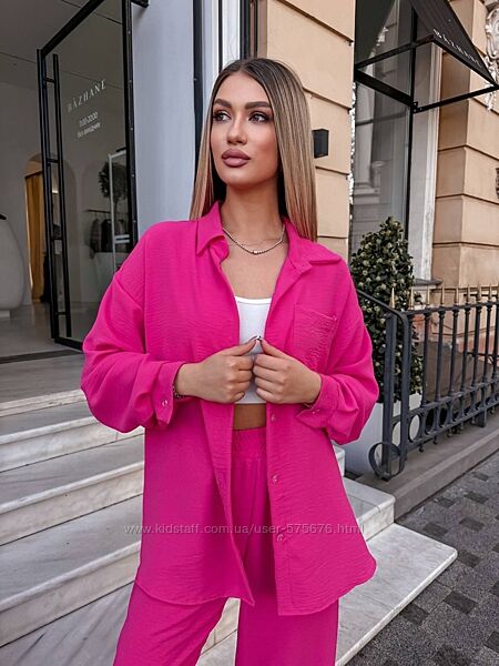 Костюм сорочка та штани американський жатий креп, преміумсорочка зі спущеним рукавом, з манжетами, на ґудзиках, з розрізами по низу;