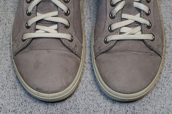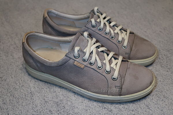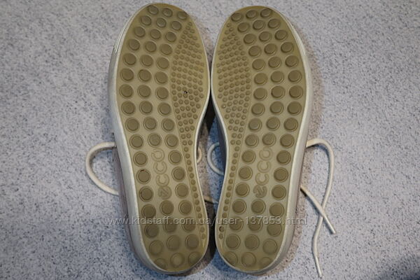 Кожаные туфли Ecco оригинал - 38 размер - 24,5 см по стельке. Снаружи - кожа нубук, внутри - кожа + текстиль, стелька - кожа + текстиль. Подошва - пена + полиуретан. Ширина по стельке в самом широком месте - 8,3 см. Очень легкие, мягкие, удобные, стильные. Очень хорошее состояние. Цена - 650 грн.