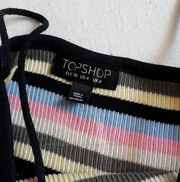 Платье в рубчик в полоску тянется на тонких бретелях topshop