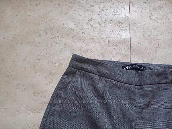 Брендовые штаны брюки с высокой талией в клетку Zara, 36 размер.
